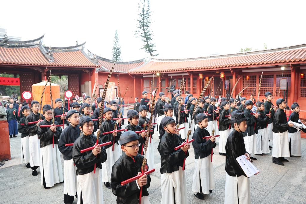 臺南市孔廟文化基金會表示,祭孔大典融合禮、樂、舞等文化元素,透過六佾舞與傳統雅樂演出,傳達對至聖先師崇敬之意,也讓民眾體會傳統文化深厚內涵與教育意義。