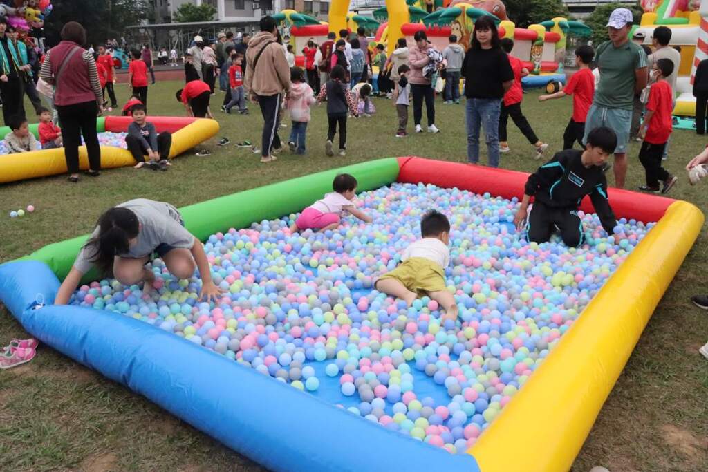 ▲現場各式充氣遊戲區。今年活動邀請新隆、興隆、九湖、銅鑼、中興、文峰等六所國小同台演出,展現客家歌謠、舞蹈及合奏等才藝,提供孩子展現自我的舞台,並促進校際交流。現場更安排園遊會「一日小老闆」、闖關遊戲、DIY創意手作、大型氣墊遊戲區等多元活動,讓孩子們在寓教於樂中培養創造力、合作精神與自信心。