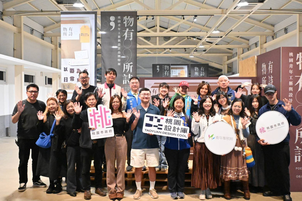 【大成報記者袁慧心/桃園報導】桃園市政府青年事務局推動「桃園設計庫」平台,持續串聯展覽、交流與品牌推廣等多元資源,打造青年創作者展示與對話的舞台。首檔展覽「物有所詩—桃園青年工藝與設計品牌特展」於2026年3月28日至4月26日在中原文創園區14倉登場,並於開幕日由青年局局長侯佳齡親自出席,邀請各界一同見證桃園青年設計能量的累積與綻放。