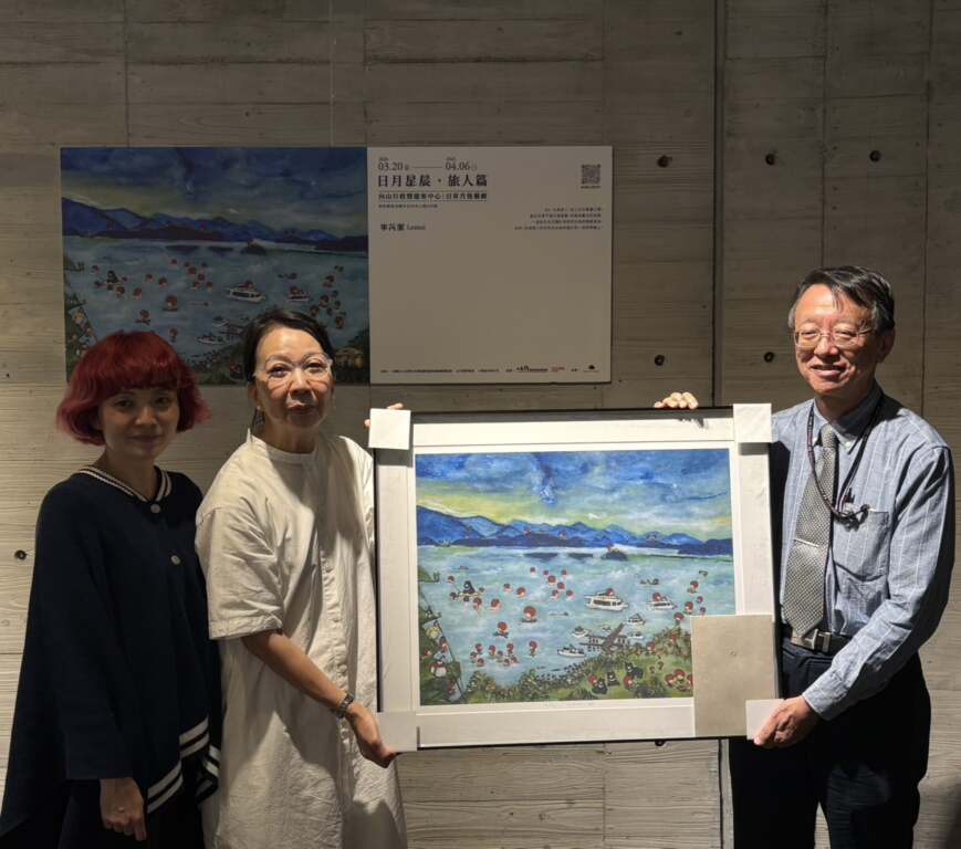 【互傳媒/記者 蘇彩娥/南投 報導】藝術與公益交織的溫暖行動在日月潭展開。藝術家寧芮潔於向山遊客中心舉辦「日月星辰-旅人篇」畫展,以細膩筆觸描繪生命情感,並將藝術創作轉化為實際公益行動,以畫行善回饋社會,支持在地醫療發展。