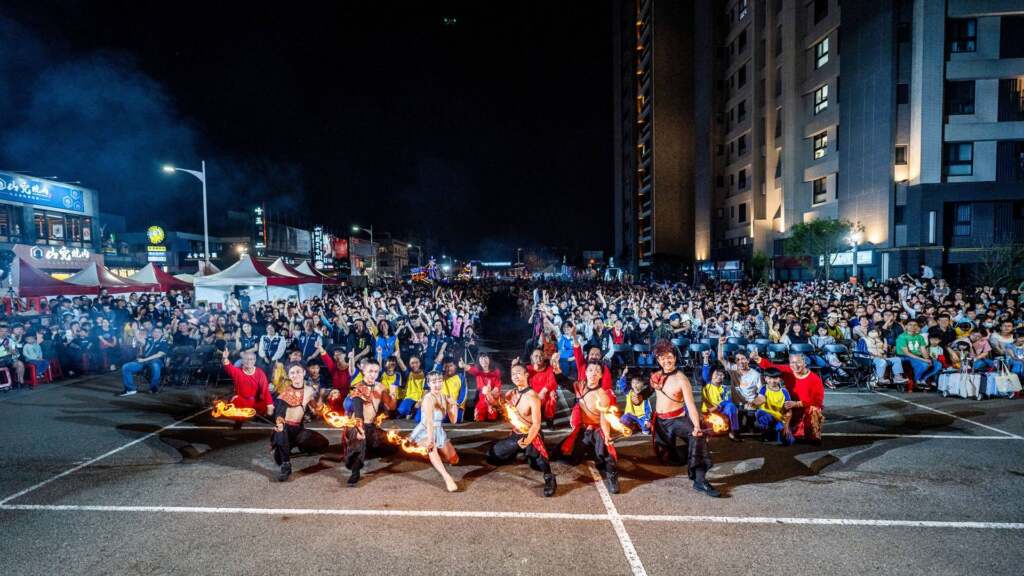 ▲迎接兒童節連假,財團法人新竹縣文化基金會昨日在湖口鄉舉辦「竹風縣藝」系列活動,首場活動邀請「即將成真火舞團」帶來《火之星》兒童火舞劇,吸引眾多親子到場欣賞。楊文科也指出,文化基金會長期協助縣府推動「竹風縣藝」等計畫,透過多元藝文活動豐富民眾生活、深化文化扎根,讓新竹縣在發展建設之外,同步累積文化軟實力。