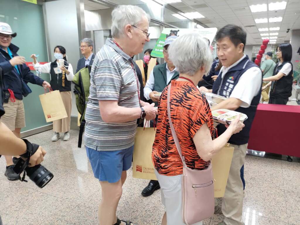 ▲致贈到訪台中嘉賓首航伴手禮。觀旅局補充,為呈現台灣民族風格及本市青少年學子青春活力氣息,由采逸舞蹈藝術中心帶領舞者參與迎賓演出,該中心於2024年代表台灣參加Dance World Cup全球決賽,榮獲青年民族小團體舞第一名佳績。演出中,采逸舞蹈藝術中心舞者首先帶來節奏鮮明、充滿律動感的「竹竿舞」,以有力的敲擊節奏與靈巧穿梭於竹竿間的舞步,展現高度技巧與活力;接著運用糖葫蘆道具演出不同民俗風格,隨著輕快旋律展現俏皮舞步與燦爛笑容,重現童年回憶的純真與幸福。整體演出讓現場遊客留下深刻印象,紛紛駐足觀賞並合影留念。