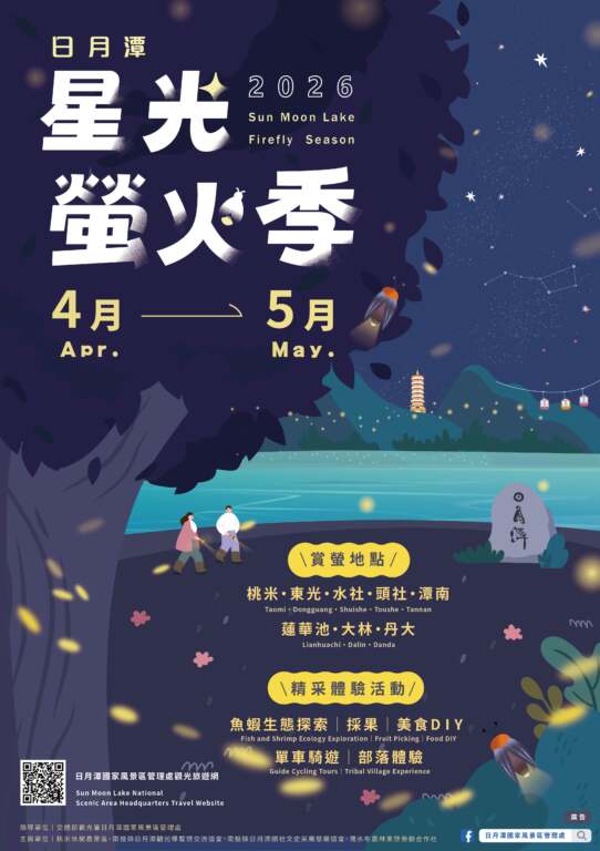 【互傳媒/記者 蘇彩娥/南投 報導】隨著春意漸濃,夜幕下的日月潭即將被點點螢光點亮。由交通部觀光署日月潭國家風景區管理處主辦的「2026日月潭星光螢火季」已於4月正式揭開序幕,活動將持續至5月31日。日管處攜手在地協會整合生態導覽、原民文化與低碳旅遊,推出多元深度遊程,邀請國內外旅客在星光與螢光交織的夜晚,感受大自然最純粹的悸動。