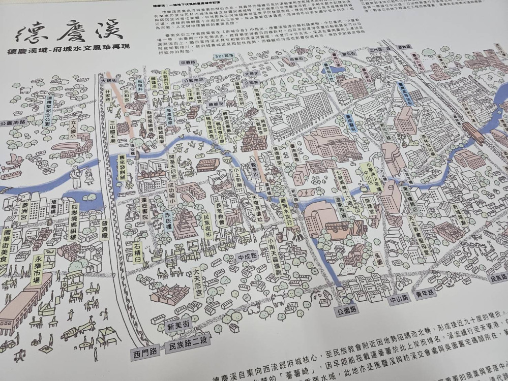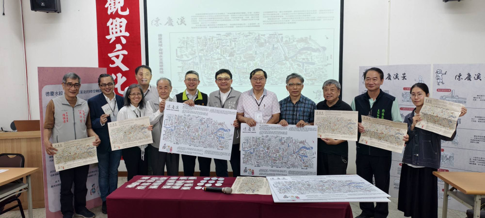 【大成報記者杜忠聰/臺南報導】為重現府城消失的城市記憶與歷史水脈,臺南市政府文化局推動「府城德慶溪設計圖繪」專案,成果發表會於8日在興濟宮隆重舉行。本專案自 114 年 5 月起委由國立臺南藝術大學邱宗成教授團隊執行,透過田野調查、史料比對與鳥瞰圖繪創作,將橫跨府城舊城區的德慶溪流域景觀完整再現。
