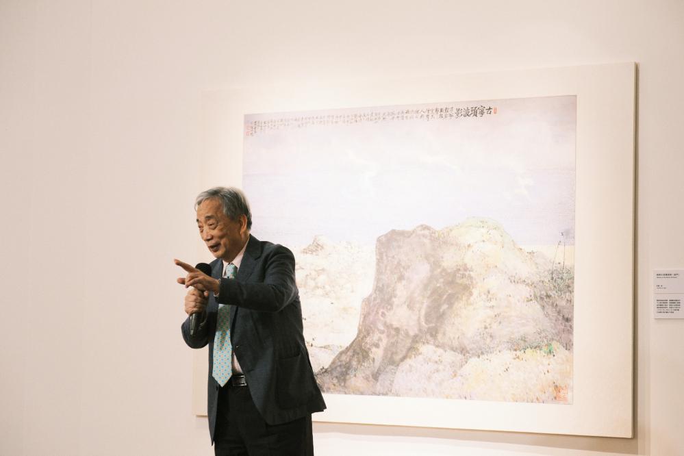策展人台藝大書畫系陳炳宏教授表示,國寶大師黃光男巧妙融合傳統皴法、抽象構成與現代視覺節奏與即興的線性流轉,使畫面同時呈現東方美學的內斂與當代藝術的開放性。筆觸的意識性與色域鋪陳,使作品不僅可被觀看,更彷彿可被「進入」與「體驗」,展現出跨越古典與現代的視覺張力。