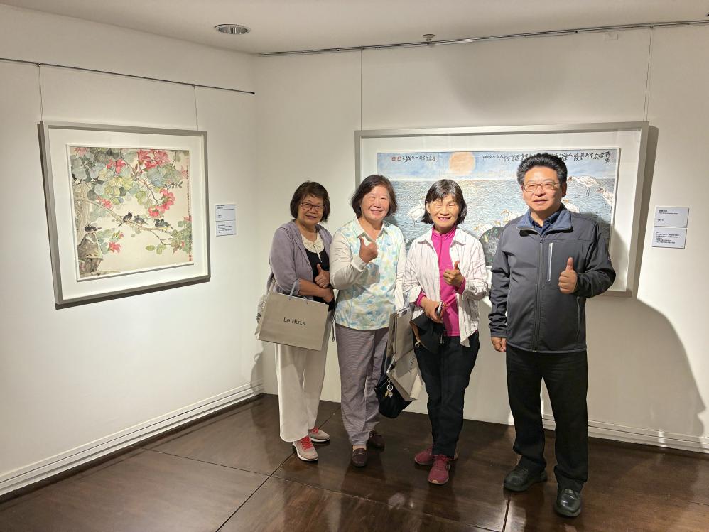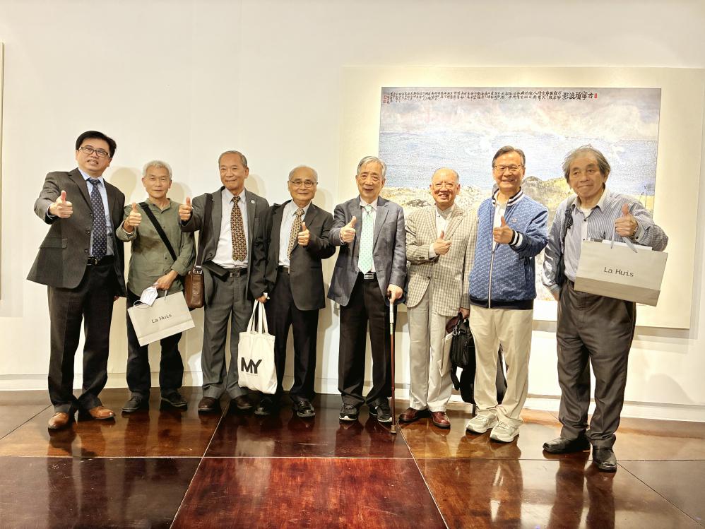 ▲「詩學畫域:黃光男文人墨彩新視域」展覽自4月9日至5月13日在陽明交大藝文中心重磅登場。竹美館館長葉于正(右1)專程與會向黃光男大師致賀,並於和藝術教育界貴賓們於展場合影。