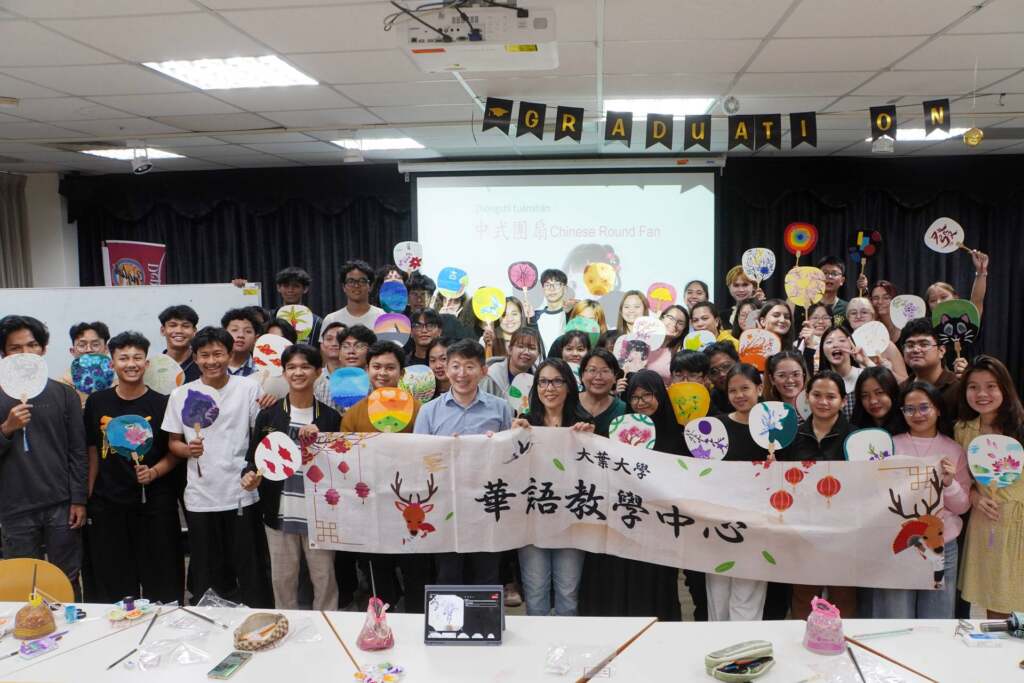 【互傳媒/記者 林明佑/彰化 報導】大葉大學華語教學中心舉辦中式團扇文化體驗活動,邀請設計學系教授鄧婉玲帶領來自法國、印尼、越南、馬來西亞、菲律賓、蒙古等多國學生,繪製專屬於自己的中式團扇,透過藝術創作感受中華文化之美。
