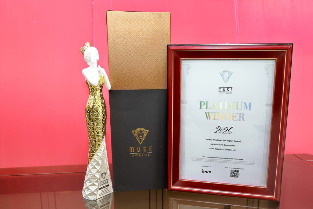 ▲一心二夜演唱會勇奪美國MUSE白金獎,南投策展實力登國際舞台。美國謬思創意大獎由國際獎項協會(IAA)主辦,為全球創意設計領域極具指標性的競賽之一,涵蓋視覺設計、品牌行銷、活動策展等多元面向。白金獎為最高等級榮譽,須在創意發想、視覺呈現及執行細節等面向獲得評審團85分以上一致高度肯定。過去包括五月天、林俊傑、陶喆、蕭敬騰等華語樂壇重量級歌手的國際巡演皆曾獲此殊榮,此次由地方政府主辦活動脫穎而出,格外具有指標意義。