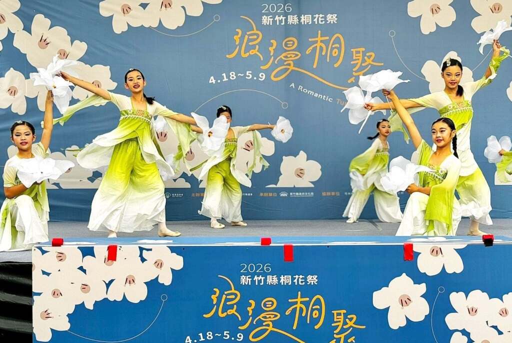 ▲「桐花漫舞映春光」舞團帶來精彩開場。開幕典禮由莊嚴的傳統「伯公祭儀」揭開序幕,展現客家人對土地的敬畏與謝意。隨後由「桐花漫舞映春光」舞團帶來精彩開場,配合多組客家歌手與街頭藝人的輪番演出,讓華龍社區活動中心前廣場充滿春意盎然的藝術氣息。