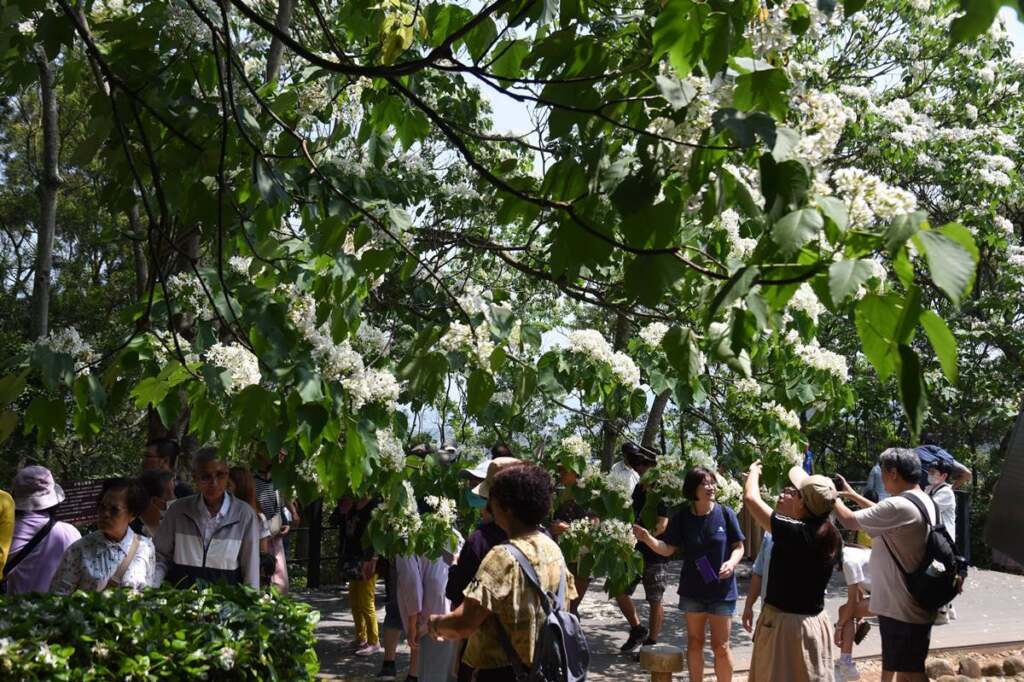 ▲遊客在雪桐步道獵取鏡頭。宴席菜單則融合經典與創新,精選苗栗當季食材入菜,規劃3段式上菜,共呈現10道料理。前菜「客庄的開始」以滷味、醃菜與冬瓜封搭配老菜脯雞湯,展現質樸純粹的客庄風味;主菜「炆火與鍋氣」除梅干扣肉、客家小炒等經典料理,另透過炆、炒、涼拌等多元手法,將紅棗、桂竹筍、過貓、紅糟與桔醬等在地食材巧妙融入,呈現層次豐富的客家好味緒;甜品「收尾與記憶」,則以桔餅甜米糕搭配苗栗當季水果,為宴席畫下溫潤圓滿的句點;場邊還設置茶席與奉茶區,提供銅鑼生產的東方美人茶與苗栗紅茶,讓飲食與茶香相互交織。