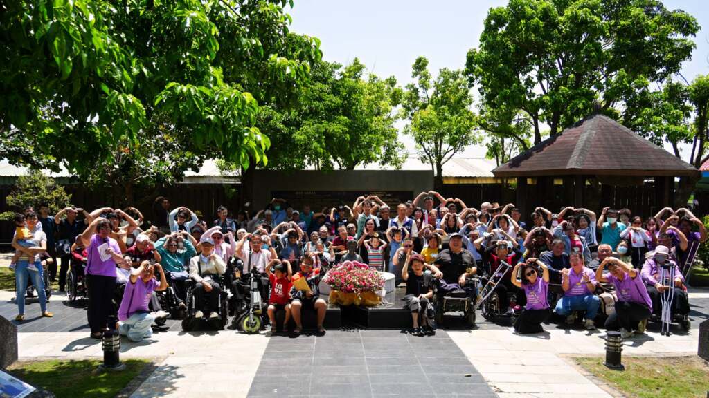 ▲喜樂阿媽逝世十九週年追思,紀念花園獻花及合影。(圖/喜樂保育院提供)喜樂保育院院長林玉嫦本身也是早期的院童,她感性表示,如果不曾受到阿嬤的無私拉拔與照顧,就不會有今日昂首的我們。喜樂不僅是許多弱勢生命第二個家,更是台灣早期社福公衛發展的縮影。今天看見早期小兒麻痺院友們重返院區,各有所成,並齊心悼念阿嬤,場面令人動容。