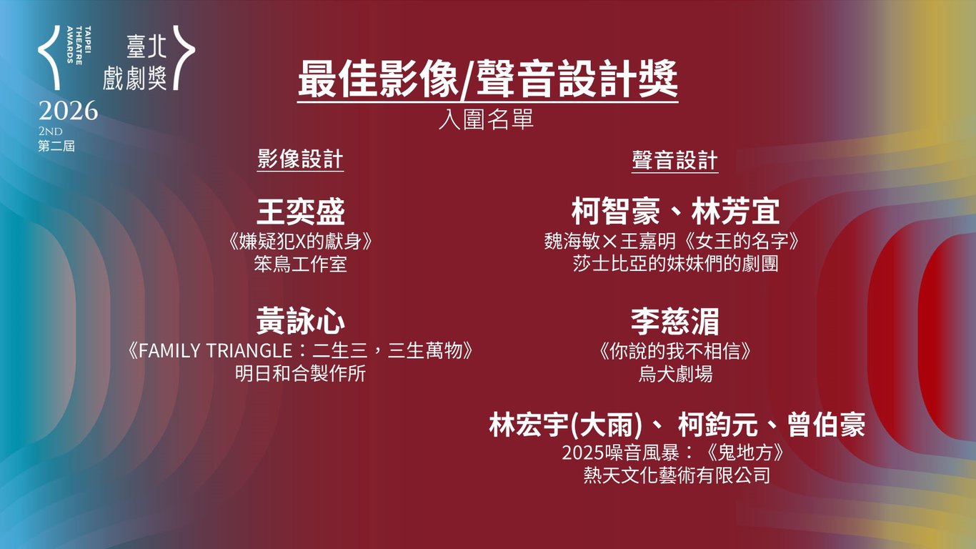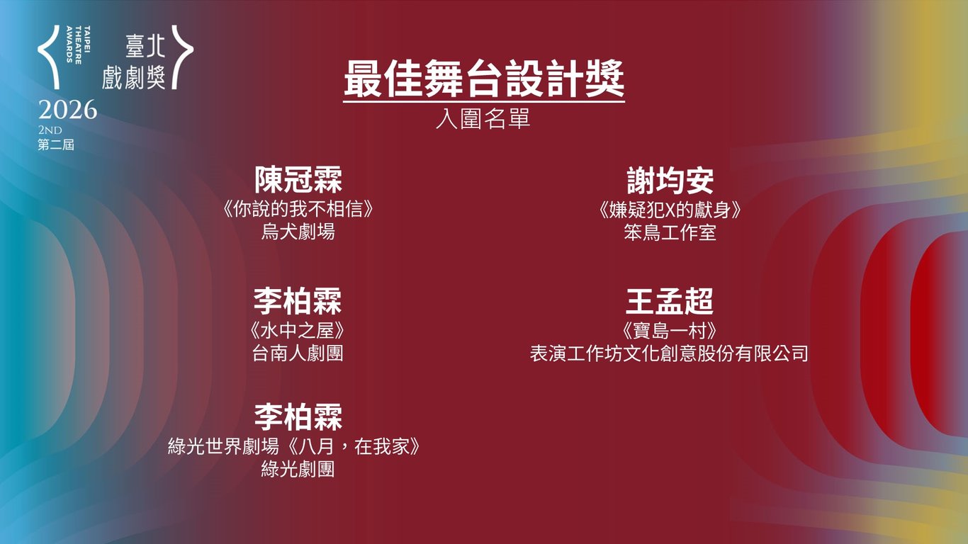在技術設計獎項方面,入圍名單囊括了劇場界的頂尖菁英。針對舞台設計、燈光設計、服裝造型、影像及聲音設計,評審團也選出了多位傑出的藝術家。這些技術團隊將文學與表演具象化,成為劇場空間中最迷人的視覺與聽覺饗宴。臺北戲劇獎透過這些獎項,不僅肯定了幕前演員的努力,更讓這些隱身於後台的幕後英雄獲得應有的掌聲。