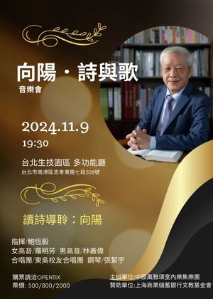 張絜宇 近期演出 2025.12.05 (五) - 2025.12.14 (日) 屏東演藝廳 《噤聲的年代》—彼年.咱袂當唱的歌 #拉縴人 #合唱 #禁歌 #戒嚴 2026.01.30 (五) - 2026.01.30 (五) 國家兩廳院 《甡歌MY SONG – 我的歌,我們的歌》 #陽明校友合唱團 #高端禾 #張絜宇 過往演出 2025.11.23 (日) - 2025.11.23 (日) 水源劇場 音樂劇《當亞斯遇見人魚》台北場 #王靖惇 #梁允睿 #陳建騏 #李曼 2025.11.04 (二) - 2025.11.04 (二) 國家兩廳院 《天使與魔鬼 》皮耶佐拉探戈音樂會 #蕭立群 #皮耶佐拉 #薩克斯風 #米特薩克斯風重奏團 2025.09.06 (六) - 2025.09.06 (六) 台北生技園區 向陽與路寒袖-當代文學巨擘音樂會暨特展 #向陽 #路寒袖 #合唱 #拉縴人 2024.10.08 (二) - 2024.10.08 (二) 外百老匯音樂劇《I Love You, You’re Perfect, Now Change》 #音樂劇 #外百老匯 #愛情故事 2024.11.15 (五) - 2024.11.16 (六) 逢甲大學合唱團《一甲子的歌聲》 #逢友合唱團 #逢甲大學合唱團 #劉靜諭 #張絜宇 2025.05.19 (一) - 2025.05.19 (一) 國家兩廳院 拉縴人青年合唱團x拉縴人少年兒童合唱團《歲月留聲II》 #拉縴人 #合唱 #歲月留聲 #電影 2025.03.29 (六) - 2025.03.29 (六) 宜蘭演藝廳 台北愛樂青年合唱團年度巡演《人聲壯遊》之宜蘭篇 #音樂 #合唱 #青年 #宜蘭 2025.04.26 (六) 國立臺北藝術大學展演藝術中心 北藝大2025春夏系列《樂韻美籟》 #北藝大 #2025春夏系列 2024.11.09 (六) - 2024.11.09 (六) 向陽.詩與歌 #向陽 #羅明芳 #林義偉 #鮑恆毅 2024.05.07 (二) 國家兩廳院 新世代的聲音IV 因為音樂 #台北愛樂室內合唱團 #因為音樂 #古育仲 #新世代的聲音 2025.07.18 (五) - 2025.07.20 (日) 臺中國家歌劇院 2025夏日放/FUN時光─紅潮劇集《當亞斯遇見人魚》 #音樂劇 #亞斯伯格 #梁允睿 #李曼 2024.11.02 (六) - 2024.11.03 (日) 台北生技園區 2024年拉縴人青年合唱團《五行說:水》 #五行 #水 #合唱 #拉縴人 我們覺得或許你也會喜歡 弦樂兔 薇閣高級中學國中部 見睹法師音樂團 飛陽音響 陸淯姿擊樂團 巴金森氏症病友及其長期照護者們