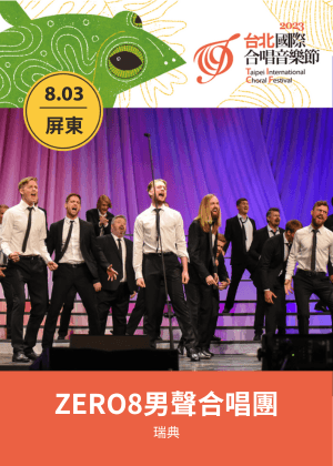 ◆ 8/03 【屏東巡演】|瑞典 ZERO8男聲合唱團 -前往購票