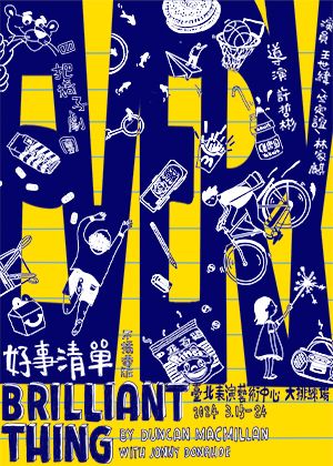 Every Brilliant Thing, developed and created jointly by contemporary British playwright Duncan MACMILLAN and British comedian Jonny DONAHOE, is a story about a boy trying to save his mother from depression.