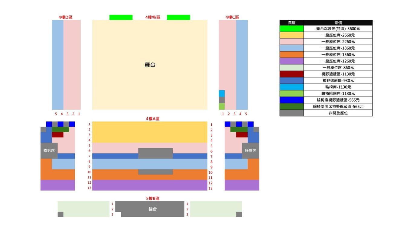 *此區因座位角度及舞台、劇場設計,有些微影響觀賞視野,請詳慮後購買。