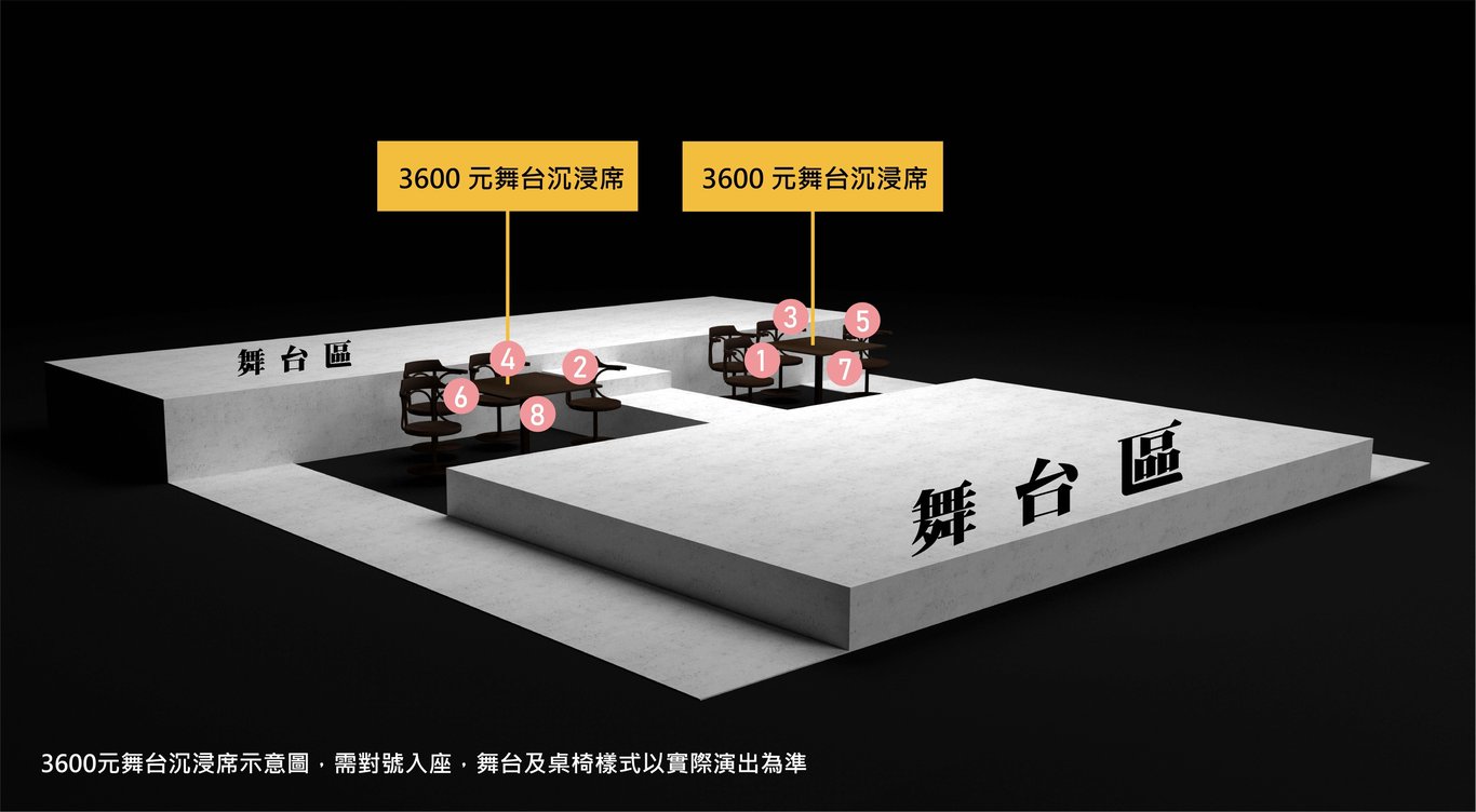 ★ 舞台沉浸席(特區) : 3,600 元 (限量8席/場)。