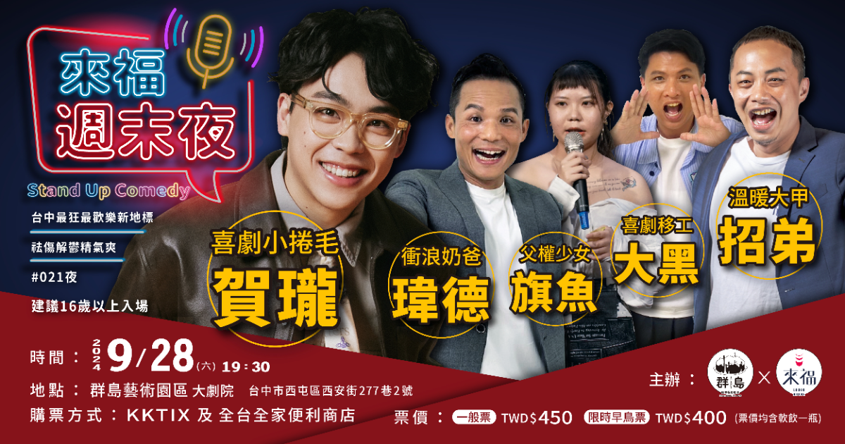 邀請北中南各地喜劇演員,齊聚搞笑陪您大笑度週末!演員: