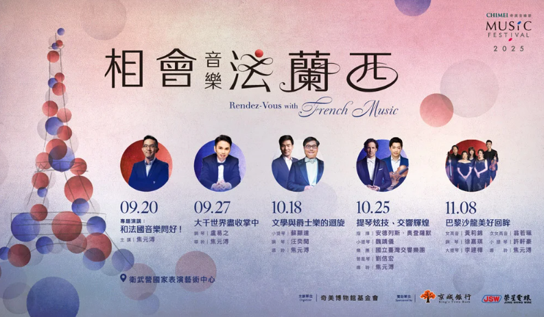 2025奇美音樂節首度全系列移師衛武營,邀請觀眾聆聽由法國文化孕育出的迷人樂音,以不一樣的視角帶您重新認識浪漫花都。