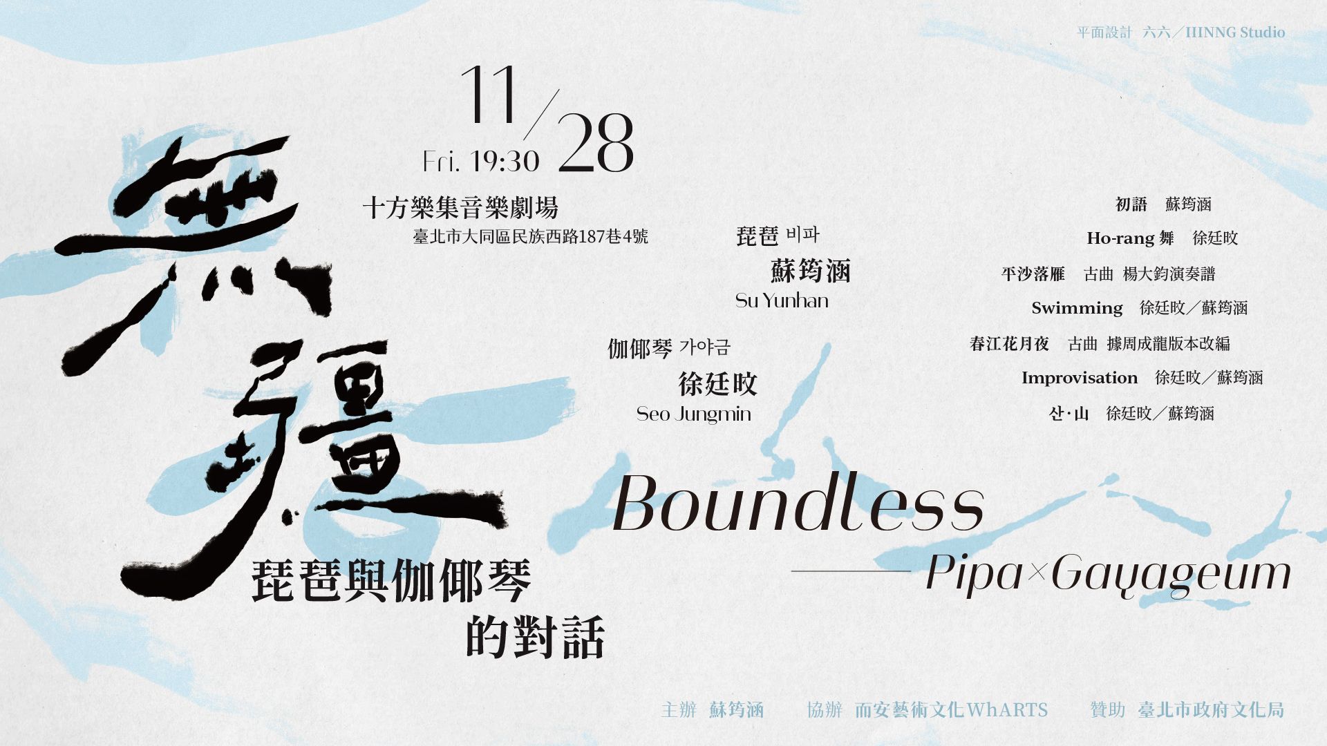 琵琶演奏家蘇筠涵與南韓伽倻琴演奏家徐廷旼(Seo Jungmin, 서정민)以「音樂無界」為核心精神,攜手展開了一場跨越文化藩籬的旅程——「無疆」。