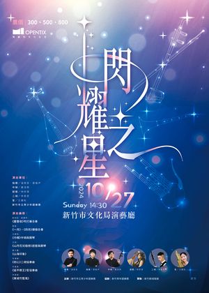 新竹巿立青少年國樂團成立以「弘揚傳統音樂,扎根青少年藝術之涵養」為宗旨,多年來培育了許多優秀的國樂人才,特別安排多位優秀的團員同台飆樂,曲風多變、精采可期,歡迎大家來聽聽「閃耀之星」帶來的好聲音。