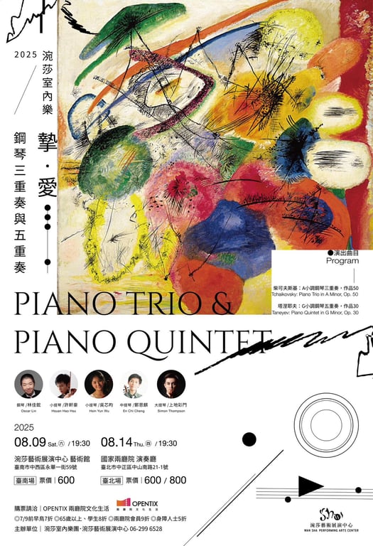 樂團璀璨室內樂集、演出者楊千瑩、鋼琴楊千瑩、演出者歐之瑀、小提琴歐之瑀、演出者翁鈺婷、小提琴翁鈺婷、演出者呂超倫、大提琴呂超倫