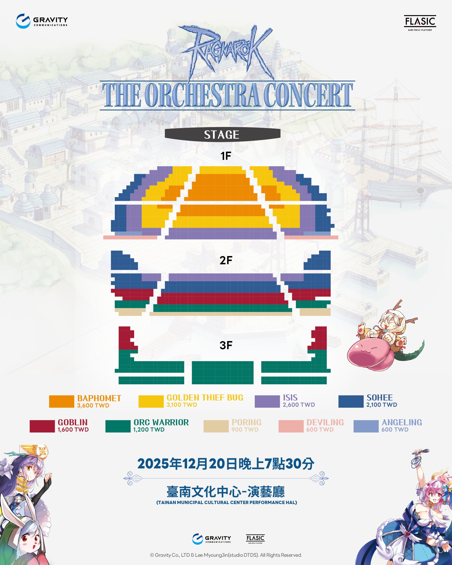Sol Chin 曾任韓國國立英才教育院管弦樂團指揮,現為韓國藝術綜合學校兼任教授、大邱國際交響樂團首席指揮,以及 Artisee 與 Mahlerian 的藝術總監。憑藉其不懈的熱情與突破性的成就,她榮獲 2024 年洪震基創造人獎(文化藝術類)。 FLASIC FLASIC 成立於 2017 年,是韓國首屈一指的遊戲、動漫及次文化音樂會製作平台。 在指揮家 Sol Chin 的帶領下,FLASIC 匯集了受過嚴格古典音樂訓練的頂尖青年音樂家,打造出融合藝術性與娛樂性的大型管弦樂製作。 公司已與多個全球知名 IP 簽署官方授權,包括《魔獸世界》、《星海爭霸》、《爆爆王》、《跑跑卡丁車》、《天堂》、《RO 仙境傳說》、《天翼之鍊》、《瑪奇》、《寶可夢》、《文明帝國》、《東方 Project》、《數碼寶貝》、《明日方舟》以及雷亞遊戲(Rayark)等。FLASIC 持續製作高品質且內容紮實的次文化音樂演出,深受觀眾與合作夥伴信賴。 作為韓國首個致力於改編遊戲與次文化 IP 的平台,FLASIC 透過連結古典演奏與當代數位文化,樹立了新的藝術標竿。 除演出製作外,該公司也致力於文化倡議,推動「版權潔淨運動(Copyright Clean Campaign)」,在韓國藝術界推廣永續創作與正版授權的觀念。