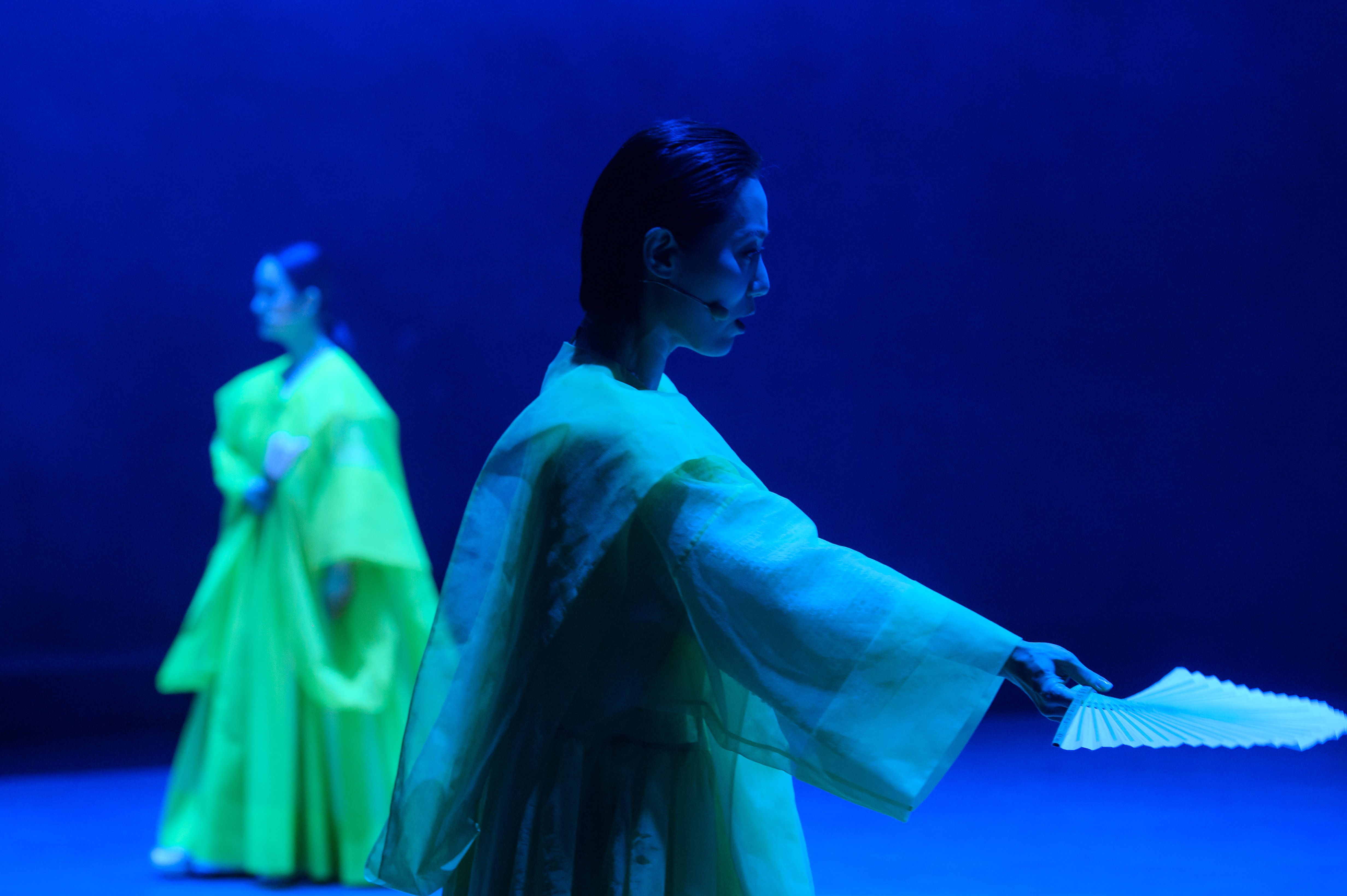《The Two Eyes看・見沈清》以「聲音可見」為核心概念,從盤索里的語言節奏出發,結合現場樂隊、聲音敘事、多媒體影像與燈光科技,讓光影、歌者與演奏者共同成為主動參與表演的共演者,構築多層次的敘事空間。