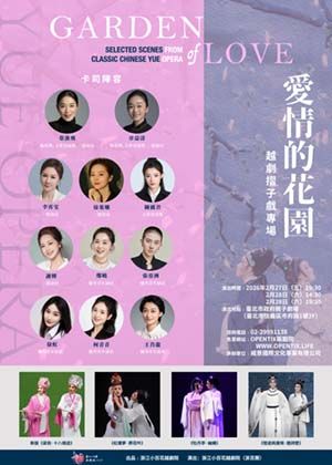 浙江小百花越劇院,創建於1984年,著名專業女子越劇表演團體。宛如世界知名的寶塚歌劇團,所有的角色,不論性別都是由團內的女演員扮演就像。女性扮演的男角既優雅又颯爽,英氣中帶有柔美,能讓觀眾被她們的表演深深打動。自建團以來,劇團足跡遍佈全球,曾多次赴港澳臺參加當地最負盛名的藝術節活動,精選《陸游與唐琬》、新版《梁祝》、《牡丹亭》、《紅樓夢》經典選段,創排“愛情的花園”摺子戲專場,曾赴法、英、德國進行巡演,廣受海外觀眾好評。此次《愛情的花園》再此彙聚小百花經典劇碼,將臺灣觀眾熟悉的《陸游與唐琬》《紅樓夢》新版《梁祝》《牡丹亭》等劇碼由新一代小百花人接力呈現,青春的陣容、全新的編排、幕間戲劇民樂的串聯,將中國傳統戲曲文化以“愛情”為主題,濃縮成一台視聽盛宴。 由中國戲劇梅花獎獲得者蔡浙飛、章益清領銜主演,一級演員李霄雯、徐葉娜,著名青年演員陳麗君,優秀青年演員謝嬋、夏藝奕、鄭曉、王肖龍、徐虹共同登臺。她們以青春洋溢的舞臺風貌、鮮明的流派特色和深厚的文化底蘊,用當代藝術語彙重新詮釋越劇經典,傳播中國傳統戲曲的獨特魅力,五大經典摺子戲,《陸游與唐琬・題壁詩》的深情悵惘、新版《梁祝・十八相送》的纏綿悱惻的形神相生、《紅樓夢・葬花吟》的淒婉動人、《牡丹亭・幽媾》的空靈唯美,用“唱念做打”的傳統技藝詮釋東方美學精髓。
