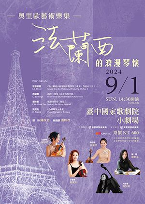 奧里歐藝術樂集 過往演出 2024.09.01 (日) 臺中國家歌劇院 2024奧里歐藝術樂集《法蘭西的浪漫琴懷》 #陳依廷/莊秉育/吳昱嫺/張菱津/陳怡蓁 #奧里歐藝術樂集OrioArts #法蘭西的浪漫琴懷 #室內樂 2025.06.21 (六) 北港文化中心 《寶島巡禮 之 ⾳韻中的星空》 #奧里歐藝術樂集 #鋼琴五重奏 #法蘭西 #室內樂 我們覺得或許你也會喜歡 福山國小國樂團 嘉頌擊樂 字母人工作室 蘭之馨黃梅調劇藝坊 高雄凱撒帝苑 Theatre Nohgaku