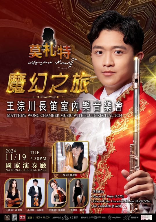 禾立樂集 過往演出 2025.06.29 (日) - 2025.06.29 (日) 高雄市文化局-高雄市音樂館 陳羽皇法國號獨奏會 #音樂 #法國號 #獨奏會 #古典音樂 #現代音樂 2024.10.18 (五) - 2024.10.18 (五) 國家兩廳院 工藤重典國際長笛重奏團音樂會 #音樂 #工藤重典 #長笛 2024.11.19 (二) - 2024.11.19 (二) 國家兩廳院 莫札特魔幻之旅 #音樂 #莫札特 #長笛 #豎琴 #弦樂四重奏 2024.10.25 (五) - 2024.10.25 (五) 衛武營國家藝術文化中心 工藤重典獨奏會 #音樂 #工藤重典 #獨奏會 2025.06.25 (三) 衛武營國家藝術文化中心 2025林晏余鋼琴獨奏會 #林晏余 #鋼琴獨奏 #李斯特 我們覺得或許你也會喜歡 臺北市立成功高中 壯擊之聲 SKANK 華岡唱友合唱團 Da Capo 室內樂團 新想股份有限公司