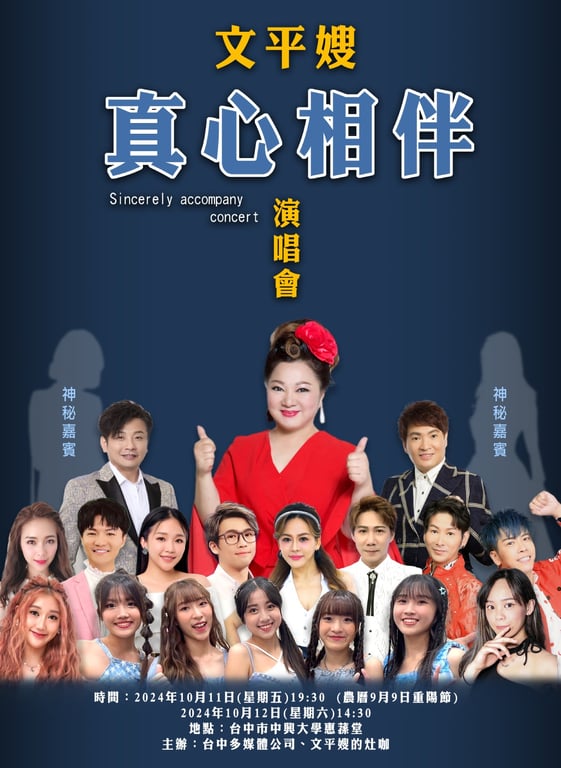 英國皇家學院 過往演出 2024.10.11 (五) - 2024.10.12 (六) 國立中興大學 2024文平嫂 真心相伴 演唱會 #楊哲 #沈文程 #音樂的繪本動物樂團 我們覺得或許你也會喜歡 雀客國際 辣果工作室 肯特郡議會 雨韻合唱團 金門傑出演藝團隊 台灣公益文化慈善協會