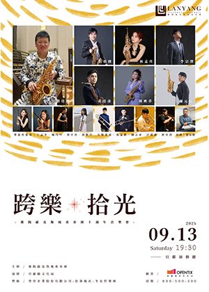 蘭陽薩克斯風重奏團 過往演出 2024.12.01 (日) 宜蘭演藝廳 Virtual Moon-蘭陽薩克斯風重奏團年度音樂會 #蘭陽薩克斯風重奏團 #Virtual Moon 2025.09.13 (六) - 2025.09.13 (六) 宜蘭演藝廳 跨樂‧拾光-蘭陽薩克斯風重奏團十週年音樂會 #蘭陽薩克斯風重奏團 我們覺得或許你也會喜歡 東京佼成吹奏樂團 東吳校友合唱團 國王舞集 S.L Band Ensemble Virama 綠韻合唱團