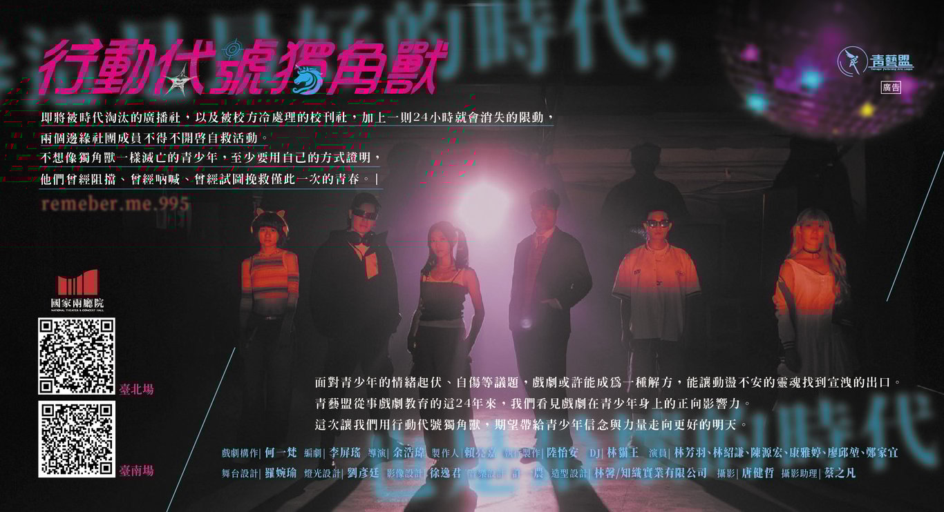 「青藝盟」串接起社會各界資源,將劇場應用結合戲劇教育的陪伴,在每個與我們相遇的青少年的心中種下一個永續的種子,讓永續的概念與精神和能透過藝術及教育的結合傳承給下一代,國家的未來由青少年決定,一起打造一個更好的台灣。
