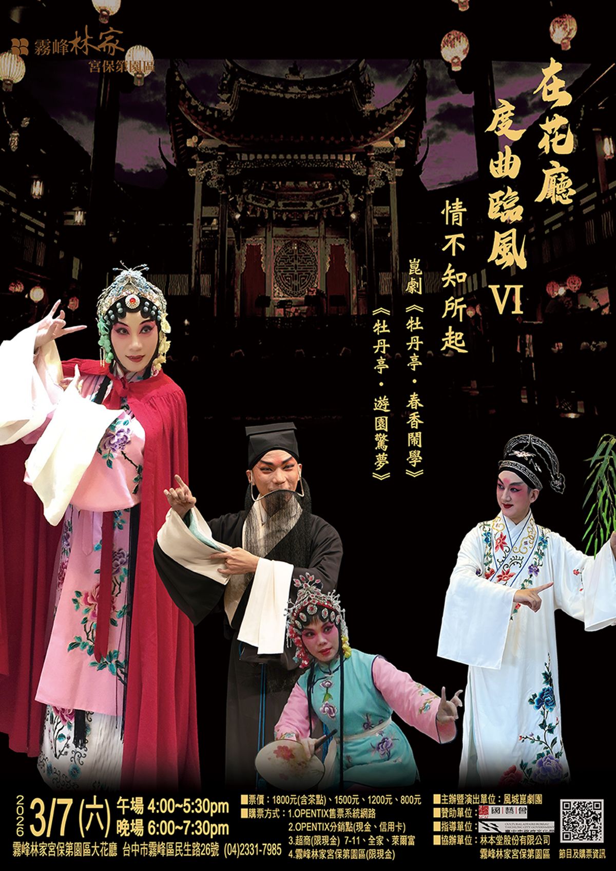 風城崑劇團 近期演出 2026.03.07 (六) - 2026.03.07 (六) 霧峰林家宮保第園區 在花廳,度曲臨風Ⅵ~情不知所起 #風城崑劇團 #牡丹亭 #崑曲 #戲劇 過往演出 2025.03.15 (六) - 2025.03.15 (六) 霧峰林家宮保第園區 在花廳,度曲臨風Ⅴ~哭不出來 #風城崑劇團 #崑曲 #蝴蝶夢 #獅吼記 2024.05.11 (六) 新竹縣政府文化局 情不知所起~《牡丹亭》之春香鬧學、遊園驚夢 #風城崑劇團 #牡丹亭 #春香鬧學 #遊園驚夢 2025.10.08 (三) - 2025.10.08 (三) 大稻埕戲苑 崑劇《長生殿》經典再製 #風城崑劇團 #長生殿 #崑曲 #kunqu 2024.10.10 (四) 大稻埕戲苑 崑劇《爛柯山》 #風城崑劇團 #崑曲 #朱買臣休妻 #馬前潑水 劇照 我們覺得或許你也會喜歡 巴黎管弦樂團 BELLO貝洛單簧管四重奏 英國曼徹斯特國際工房 國泰世華銀行 東籬畫廊 藍圖整合行銷 廖俊榮
