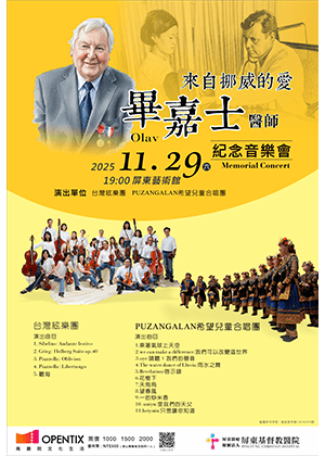 PUZANGALAN希望兒童合唱團 過往演出 2025.11.29 (六) - 2025.11.29 (六) 屏東藝術館 來自挪威的愛-畢嘉士醫師紀念音樂會 #屏東基督教醫院 #台灣絃樂團 Taiwan String Ensemble #PUZANGALAN希望兒童合唱團 #畢嘉士 我們覺得或許你也會喜歡 jaomas photo studio 弗萊德.赫許鋼琴三重奏 育陽舞蹈團 加拿大國家藝術中心管弦樂團 加一吉他 好魔力口琴樂團